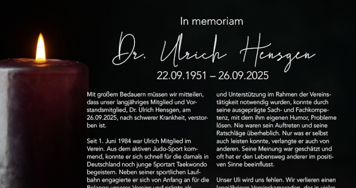 /in Alle, VerschiedenesMit großem Bedauern müssen wir mitteilen, dass unser langjähriges Mitglied und Vorstandsmitglied, Dr. Ulrich Hensgen, am 26.09.2025, nach schwerer Krankheit, verstorben ist.