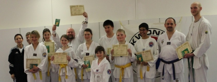 Am vergangenen Wochenende fand in Berlin die Bundesdanprüfung der Deutschen Taekwondo-Union statt. Bei dieser Prüfung werden Sportler aus allen Landesverbänden, die eine Graduierung vom 4. bis zum 8. Dan ablegen wollen, geprüft.