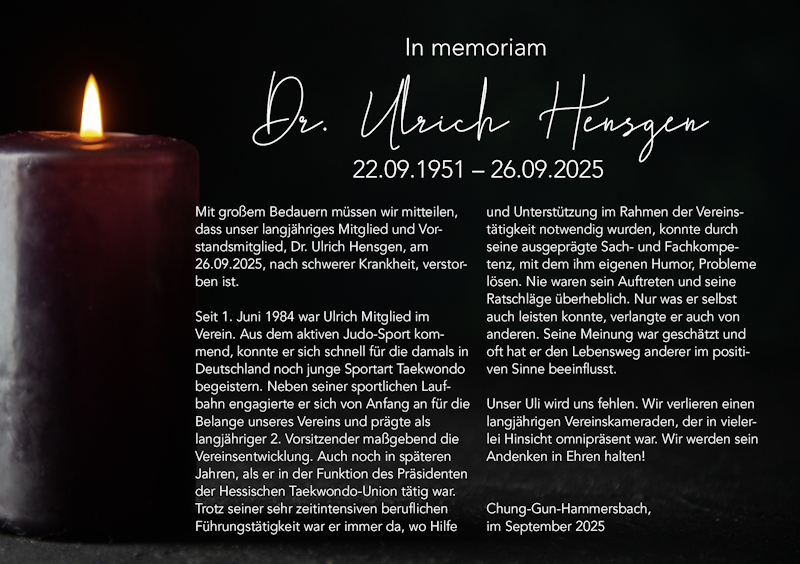 Mit großem Bedauern müssen wir mitteilen, dass unser langjähriges Mitglied und Vorstandsmitglied, Dr. Ulrich Hensgen, am 26.09.2025, nach schwerer Krankheit, verstorben ist.